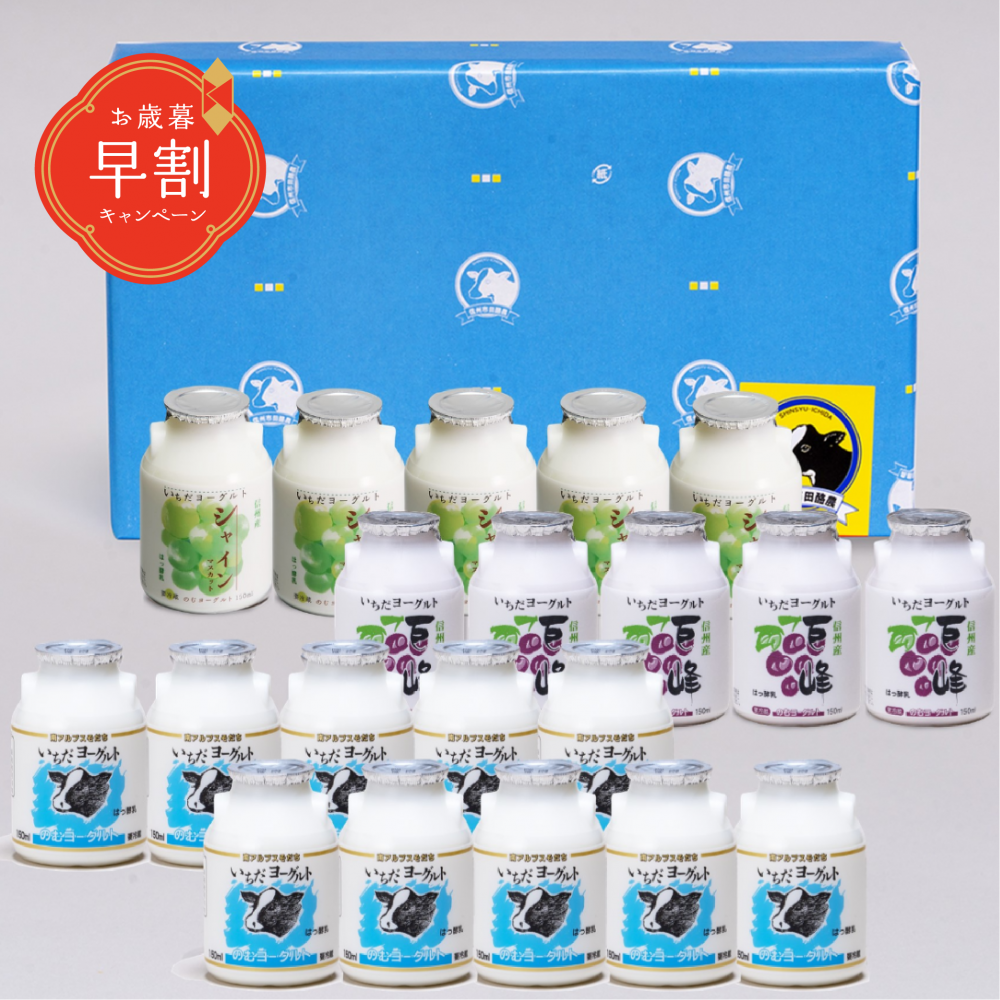 人気商品「いちだヨーグルト」、信州産のぶどうのみを使用した専用ソースを加え、美味しさを詰め込んだ「巨峰ヨーグルト」・「シャインマスカットヨーグルト」からお気に入りの一品を見つけてみてください。